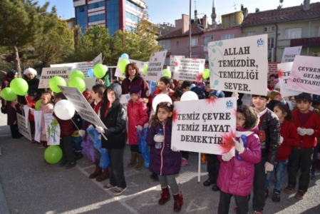 Kültür Park’ta son bulan yürüyüşün ardından İhsaniye İlkokulundan bir öğrenci tarafından temizlik bildirgesini okudu.