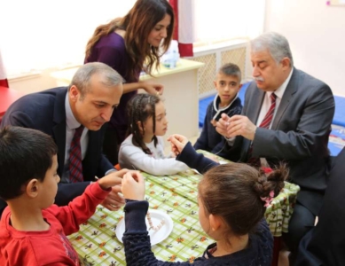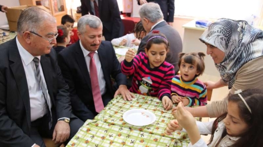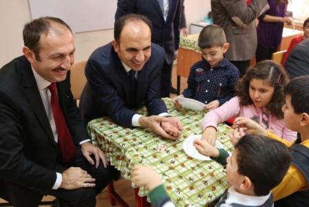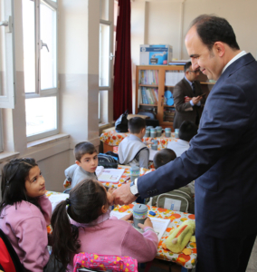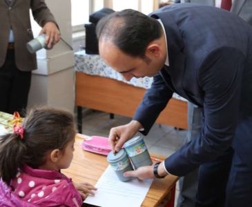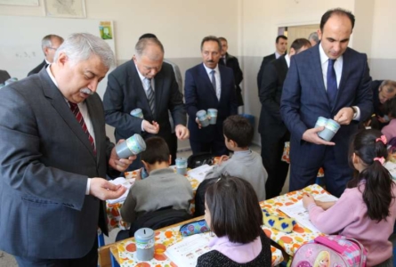 Günün bir diğer etkinliğinde heyet, Mimar Sinan İlkokulu 1. Sınıf öğrencileriyle bir araya geldi. Paylaşım ve tasarrufa vurgu yapılan etkinlikte heyet tarafından öğrencilere çöp konteynırı şeklindeki kumbaralardan dağıtıldı. Kumbaralara ilk paralar, Kaya, Altay, Şeker ve Kayacılar tarafından atılarak öğrencilere tasarruf etmenin önemi ve paylaşmanın birlik ve beraberlik duygularının gelişmesi için gerekli bir davranış olduğunu anlatıldı.