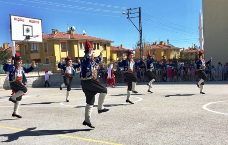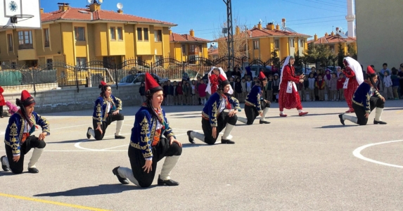 Mehter Takımı ve Halk Oyunlar Ekibi önce Kemal Rızvanoğlı İlkokulunda gösteri yaptı.